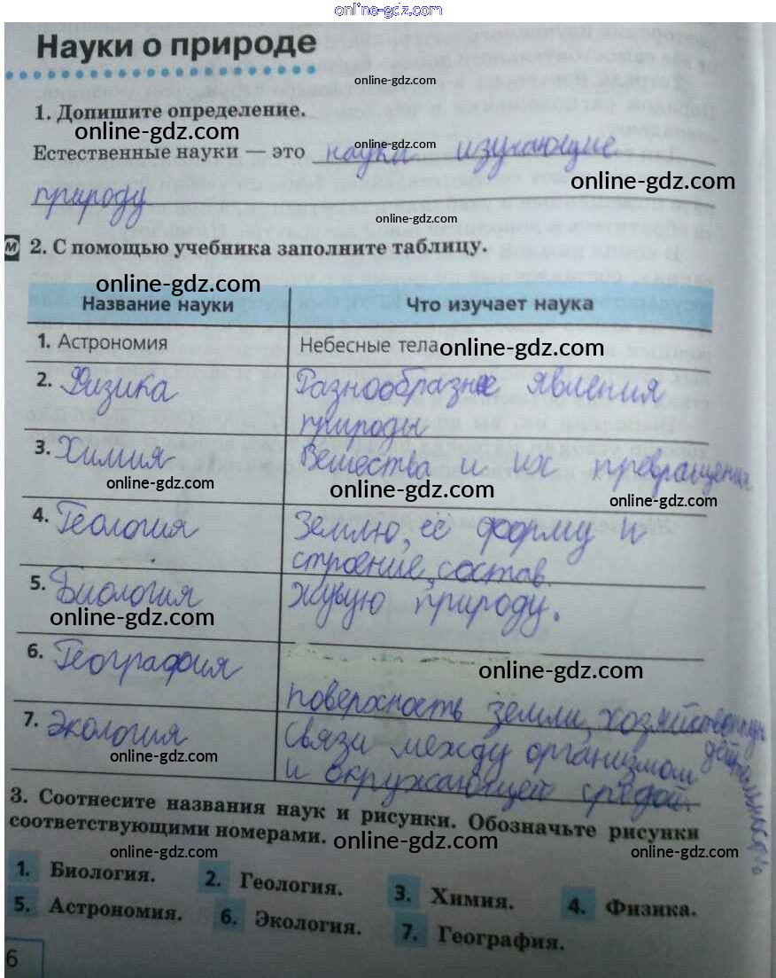 Готовые домашние задания по Естествознанию за 5 класс Рабочая тетрадь Плешаков, Сонин Вертикаль 2015 - Страницы 6