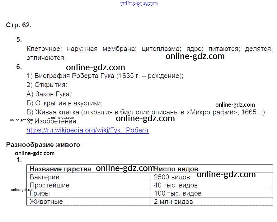 Готовые домашние задания по Естествознанию за 5 класс Рабочая тетрадь Плешаков, Сонин Вертикаль 2015 - Страницы 62