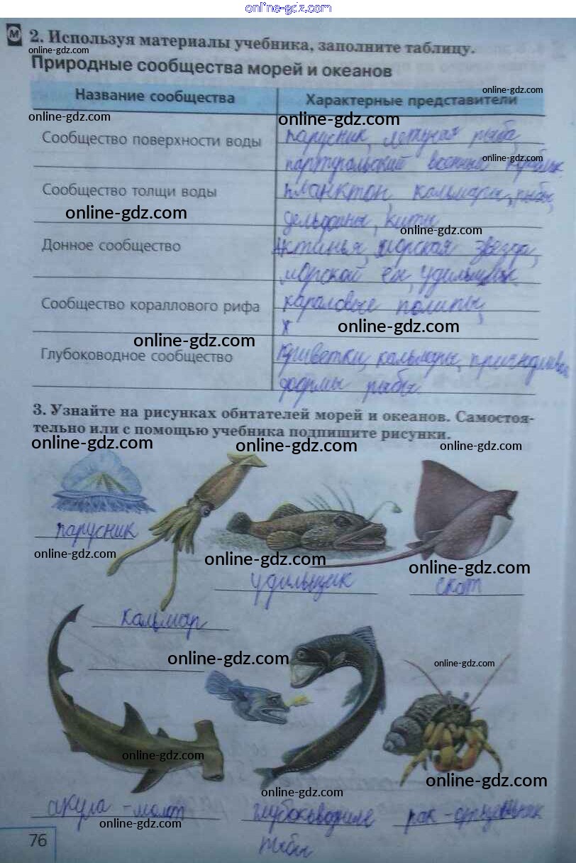 Готовые домашние задания по Естествознанию за 5 класс Рабочая тетрадь Плешаков, Сонин Вертикаль 2015 - Страницы 76
