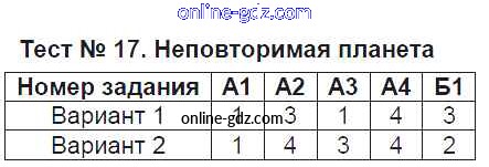 Готовые домашние задания по Естествознанию за 5 класс Тесты Воронина УМК 2015 - Тесты Тест №17. Неповторимая планета