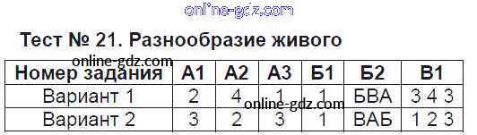 Готовые домашние задания по Естествознанию за 5 класс Тесты Воронина УМК 2015 - Тесты Тест №21. Разнообразие живого
