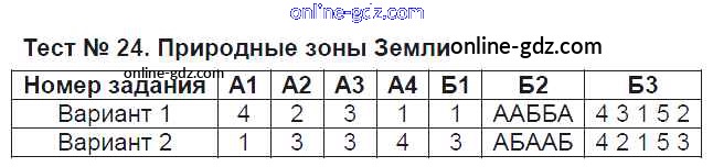 Готовые домашние задания по Естествознанию за 5 класс Тесты Воронина УМК 2015 - Тесты Тест №24. Природные зоны Земли