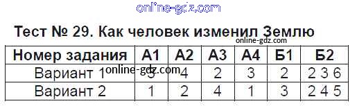 Готовые домашние задания по Естествознанию за 5 класс Тесты Воронина УМК 2015 - Тесты Тест №29. Как человек изменил Землю