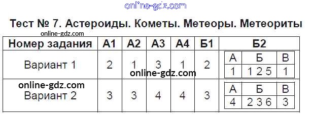 Готовые домашние задания по Естествознанию за 5 класс Тесты Воронина УМК 2015 - Тесты Тест №7. Астероиды. Кометы. Метеоры. Метеориты