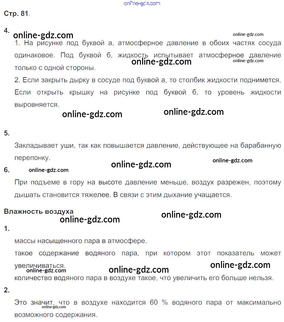 Готовые домашние задания по Естествознанию за 6 класс Рабочая тетрадь Гуревич, Краснов УМК 2019 - Страницы 81